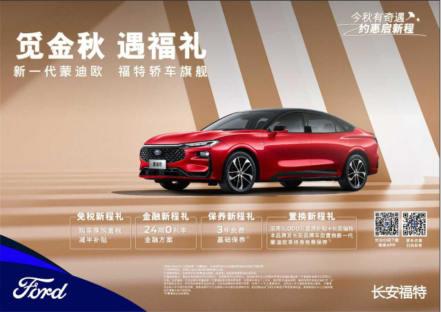 置換新程禮:至高5,000元置換補貼+長安福特本品牌及長安品牌車型置換新一代蒙迪歐享