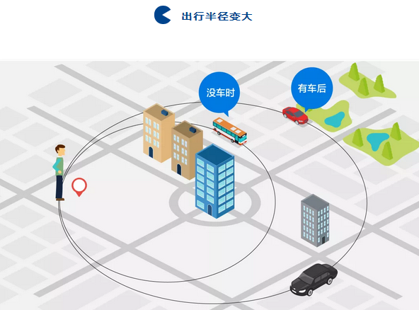 沒車時(shí),出行范圍根據(jù)交通條件決定